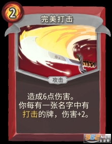 完美战的核心输出卡牌,见到务必抓取。抓取数量控制在5张左右较为适宜。此卡牌需要锻造,搭配9张名字含“打击”的卡牌,伤害可达33,等同于一张未经强化的3费重锤。