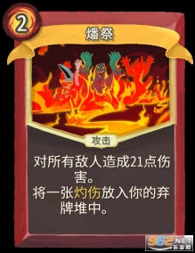 一张在输出线上锦上添花的牌。前期抓取一二层对于群伤有奇效,拿来对付鸟等……后期只为了三层打小黑让牌库有张灼伤显然不太划算。