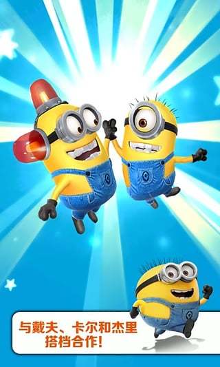 《神偷奶爸小黄人快跑游戏》是一款极具代表性的跑酷游戏。在游戏里,处处洋溢着欢乐的氛围,同时也不乏各种挑战。你将和那些会跳跃、能飞翔、擅长躲避障碍,还会以极其搞怪姿态狂奔的小黄人们携手,共同去击败大反派格鲁老板。