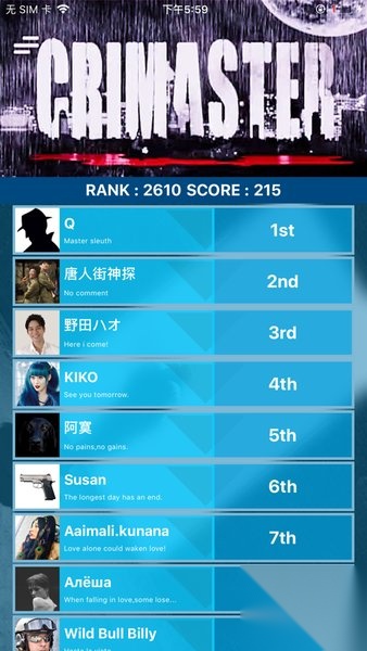 Crimaster犯罪大师和狼人杀颇为相似,它由几个小游戏构成。玩家需在线与其他玩家展开竞技PK,看谁能率先新出现的案件,内容相当烧脑。你准备好了吗?