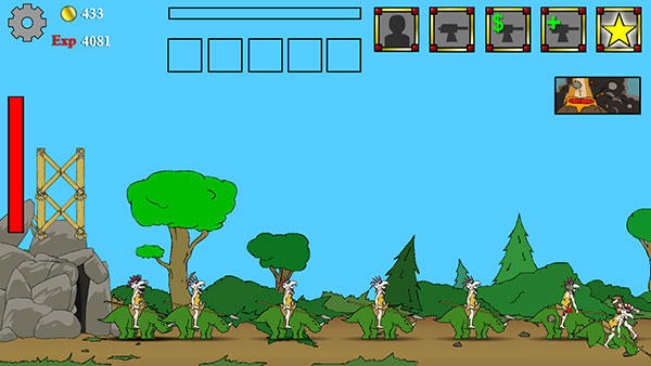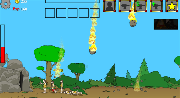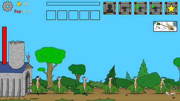有人说过,文明的产生永远伴随着战争,无论是原始人类,现代社会,还是未来世界都是这样的,但是战争还会产生毁灭。战争进化史是一款战争守城的小游戏。从蛮荒时代,到现代武器,到未来战士,你指挥你的军队买兵买武器守卫领土,进化,升级,直到摧毁敌人的堡垒!战争进化史从被动防守,到反击,最后大反攻,一直攻破对方,每一次进步和升级都会让玩家雀跃,游戏的画面还算精致,比较清晰,尤其是攻击效果,无论是弹弓、冲锋枪、激光炮都让玩家看着有一定的真实感。这款游戏最大的特色就是“进化”,刚进入游戏的时候,玩家还是原始人,当通关打到对方城堡的时候,玩家已经进化成未来战士。游戏共有 5 种社会形态,兵种分别为原始人类、丛林战士、西部牛仔、现代军队、未来战士,对应的武器、驻地、炮塔都会升级。