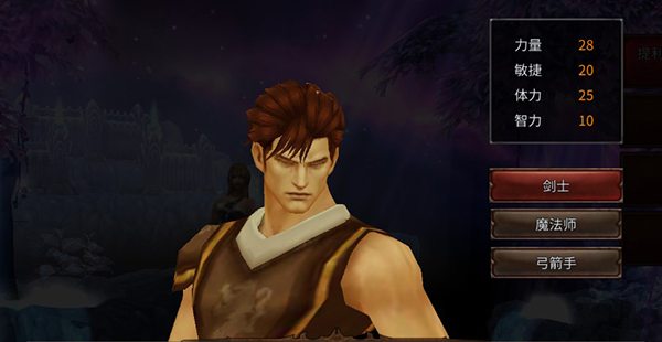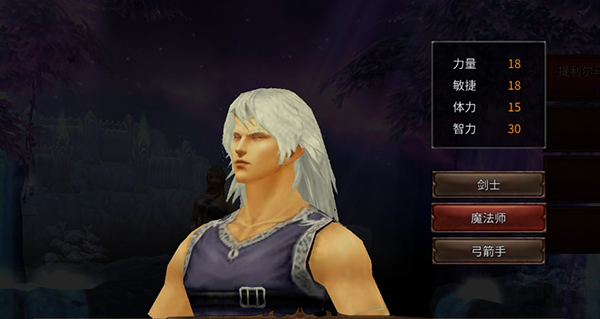 1、进入游戏从剑士、魔法师、弓箭手三大职业当中选择一个职业;