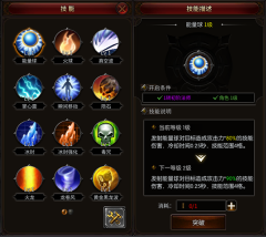 (1)初期技能:能量球、火球、真空波、掌心雷、陨石、火龙、龙卷风、黑龙波。都是在刚进入游戏时学习的技能。技能虽多,但是日常使用以陨石和黑龙波为主。