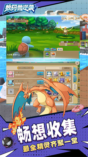 《数码兽逆袭0.03折》作为一款以《精灵宝可梦》为蓝本改编的Q版3D角色扮演手游,玩家在游戏里可收集多达800余种形形色色的宝可梦精灵。不仅如此,玩家还能在《数码兽逆袭0.03折》中与其他玩家进行对战,打败对方的宝可梦精灵。