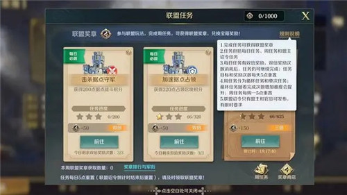 据点争夺过了24点时占领时间翻三倍,所以不建议半夜去争夺据点,据点里驻守部队越多,占领时间越短,最多入驻30个部队以后,占领时间不变。攻打据点和占领据点都会获得联盟积分,联盟积分可以在联盟商城界面兑换资源包,让玩家的成长加速,商城会定时刷新。