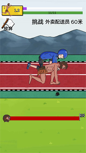 5、第一关是挑战外卖员,60米路程,比谁先到终点,同样是点击屏幕来增加速度的玩法。