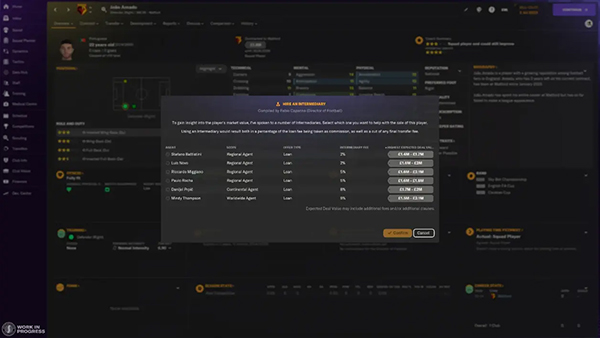 中介也会为其他俱乐部工作,这意味着如果其他俱乐部想要出售球员,他们会直接联系您。在这种情况下,您将收到一份球探报告,其中包含经纪人反馈和达成交易所需的财务细节概述。