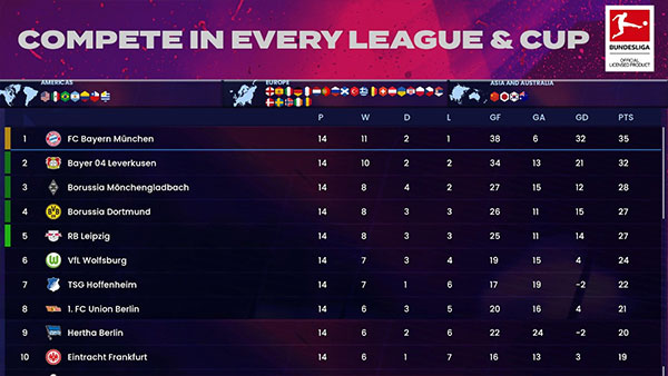 在全权授权的欧洲冠军联赛、欧洲联赛和欧洲会议联赛等比赛中感受盛大的足球氛围。优化的杯赛抽签机制,盖有官方标识的出场球队表、记分牌和进球图标,仿佛置身于真实的欧足联俱乐部比赛。