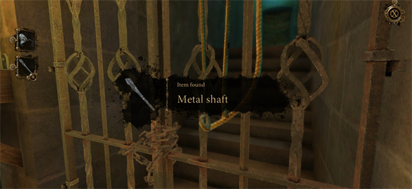 5、行至下一个铁门,使用之前的工具放进洞口转动就能打开门并获得道具。