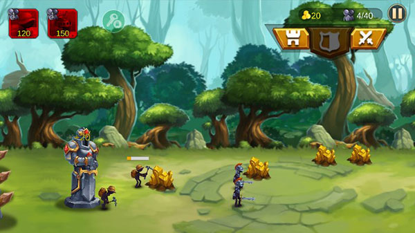 2、待玩家的战争矿产收集达到一定程度,便可开始训练您的战争士兵了,士兵的训练是需要消耗一定的金钱才能产生,训练好士兵之后,点击下图中的位置图标,便可挥舞你的火柴人军团去进攻敌人的营地。