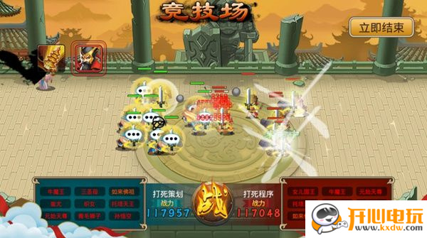 双方战力旗鼓相当,左方为新版本阵容,右方为老版本阵容,
