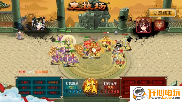 【战况4】由于无敌buff在,对方女儿技能打空后,我方织女迅速一个技能压低对方全部仙将的血线