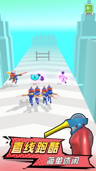 2.带领自己的角色,可以通过直线的酷跑方式,把道路上的对手全部都消灭干净。