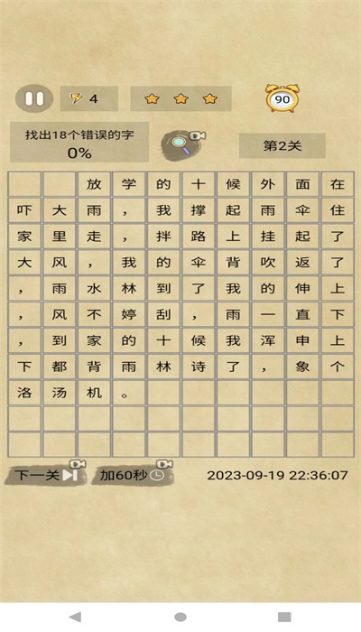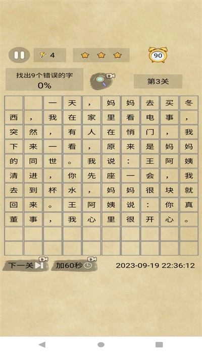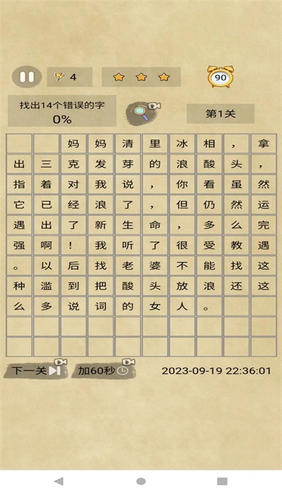 小日记找错是一款超好玩的休闲益智游戏。在游戏里,玩家会看到大量日记,要从一篇篇日记中找出那些“奇遇”语句,还能随时标记出有问题的词语。玩这款游戏,能提升玩家的阅读能力,让玩家快速发现错误语句内容,只需动动手指,就能迅速将其圈画出来。