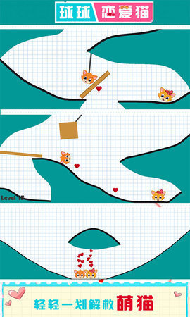 *游戏简单有趣,操作方式非常轻松,你只需要通过点击屏幕或滑动手指,就能帮助球球猫找到自己的伴侣并相遇。