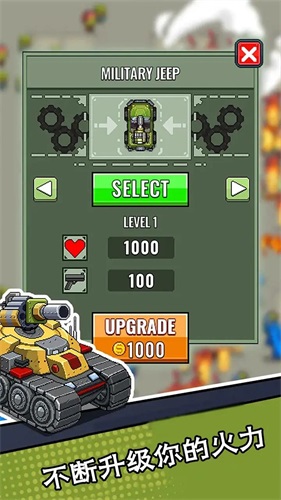 3.每一个战车的等级都会显示的很清楚,通过金币来将他们升级。