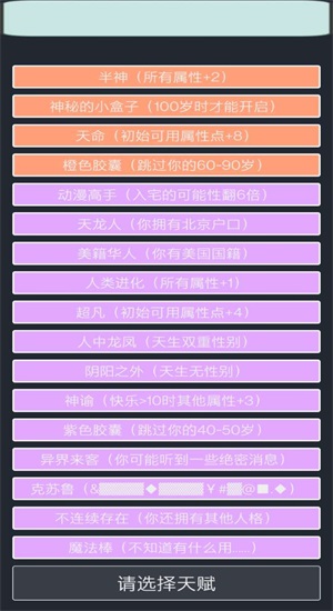 在游戏操作时毫无门槛限制,每次塑造角色,你都能对软件中角色的天赋提出质疑,进而开启各异的游戏闯关关卡。玩家需及时把握所有角色的人生走向,掌握最新游戏规则,使角色的人生更加丰富多彩。