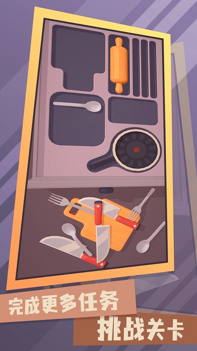 3.充分利用冰箱和抽屉的空间,使他们能够摆放更多的东西,摆放整齐即可通关,同时还能帮助玩家提高自己的收纳水平。