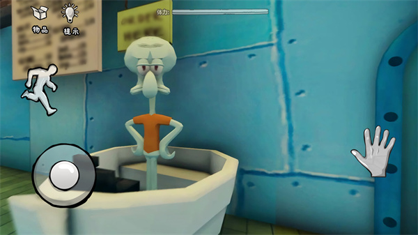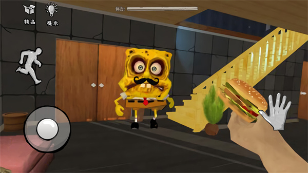 1. 此款游戏中的海绵宝宝,可不像动画片里那般可爱。在游戏里,它会对你展开四处追杀,着实恐怖。