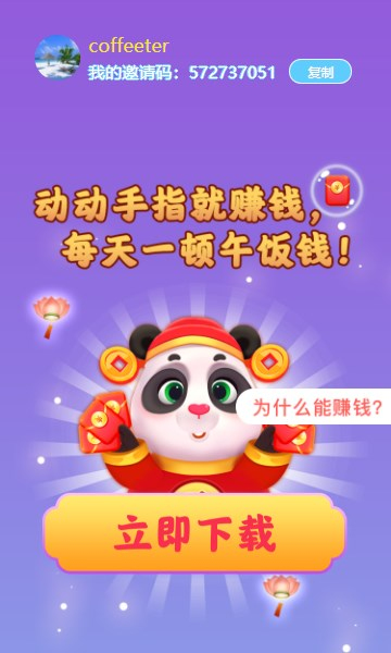 熊猫招财乐是一款特别好玩的闯关游戏。游玩过程中,熊猫会向玩家提出诸多问题,只要正确回答,就能获取红包。可爱的小熊猫每日还会更新一些任务,保证玩家每天都能收获大量红包。它类似消除类游戏,好玩程度堪称一绝。