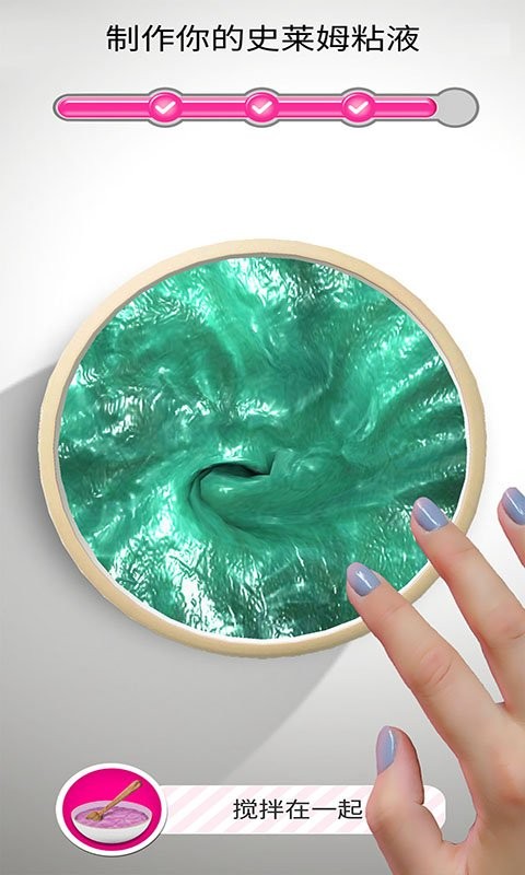 1. 搅拌不同的粘液,还能体验到更多由化学颜料制作产生的效果。