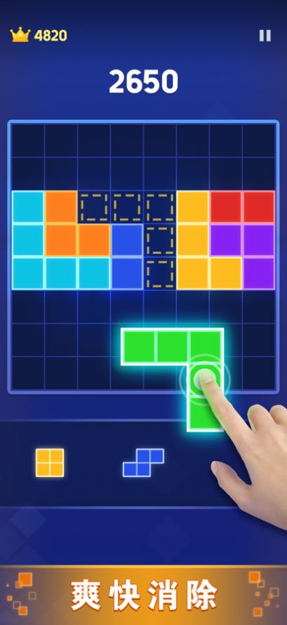 ·点击屏幕上的各种图形,需要放置在相应的位置进行方块消除。