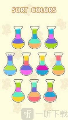 这是一款颜色排序特别有趣的休闲游戏。在游戏中,玩家要把五颜六色的液体倒入对应的试管中,并且完成排列。随着关卡推进,难度会增大,试管数量也会增多。它很考验小孩子的思维,同时还能提升孩子对颜色的辨别能力。