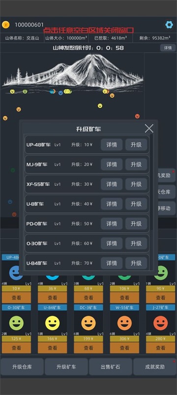 3.升级矿车的等级,这样可以更轻松的挖到更多的矿石,用赚取的利益对你的矿场进行扩大。