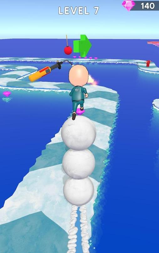 2.需要玩家在赛道上收集更多的雪球,跨过所有的障碍物,让雪球顺利到达终点。