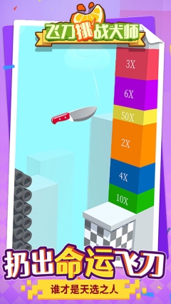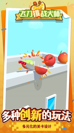 3.每次都要找到飞刀发射的最佳角度,而且切割的物品不同,获得的分数就不一样。