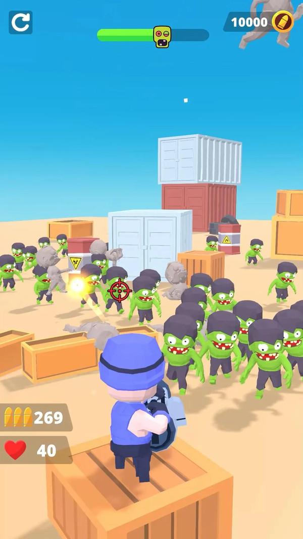 2.面对可怕的僵尸时,千万不要害怕,需要勇敢的拿起武器,疯狂的向他们扫射。