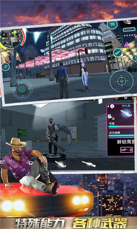 2.场景描述非常逼真,并且有大量的道具和武器可供使用,升级武器并抓捕更多犯罪分子。
