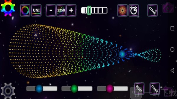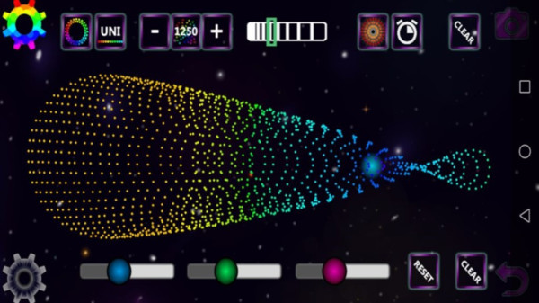 2.关于重力的强度和粒子的外观,有许多自定义选项。用手指生成行星并移动它们。