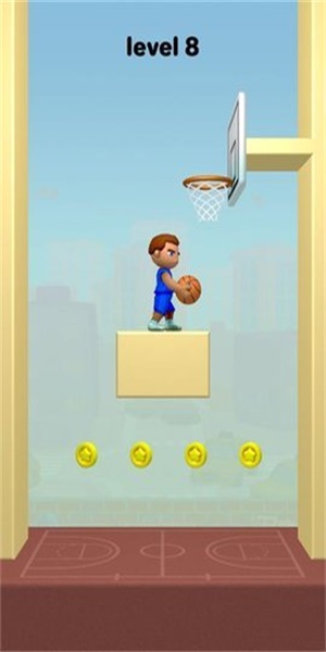 这款游戏的画面与操作都相当新颖,一旦上手便让人欲罢不能。起初的关卡难度较低,玩着玩着就愈发有意思起来,有着各式各样超乎想象的投篮方式,过程中还能拾取金币。后续的关卡,有些设计得十分奇葩,有些则颇具难度,对玩家的思维与操作是极大的考验。