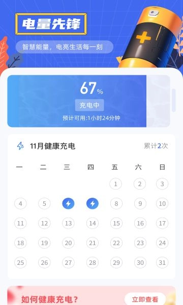 电量先锋,一款为智能手机用户量身打造的智能电池管理软件。借助它,用户能便捷监测手机电池状况,轻松省去诸多麻烦。软件还会呈现详细的电池信息,助力用户更清晰地知晓电池使用情况。充电时,该应用拥有智能控制功能,可有效避免过充等问题。此外,它还提供多种省电模式,方便用户依据自身需求挑选合适的模式。