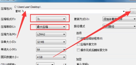1第一步,使用7zip将文件添加到压缩包,接着在压缩等级选项里选取“最大压缩”。