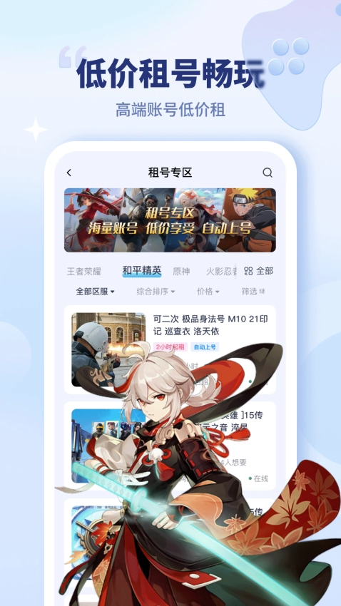 还可以享受低价租号福利,以后可以用非常少的钱,畅玩各种高端游戏账号了;