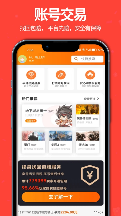 5、能够对自己的账号交易进行安全保障,轻松获取账号包赔服务。