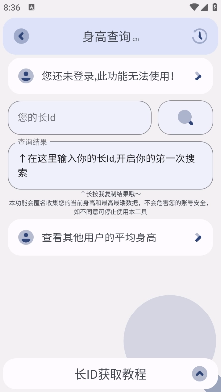 4、输入个人游戏ID,便能查询到游戏内的身高数据。