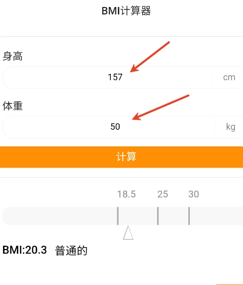 2、用户需要根据需求在线输入你的身高,体重,点击计算即可。