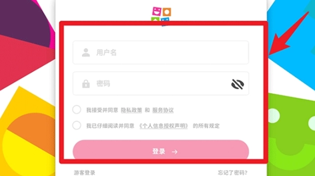 1. 开启英孚教育App,待进入登录界面后,填入用户名和密码,同时勾选协议条款,最后点击登录。