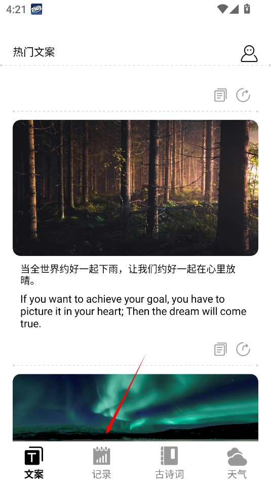 1、点击你想要分享的文案下方,形如以下图示的标识。