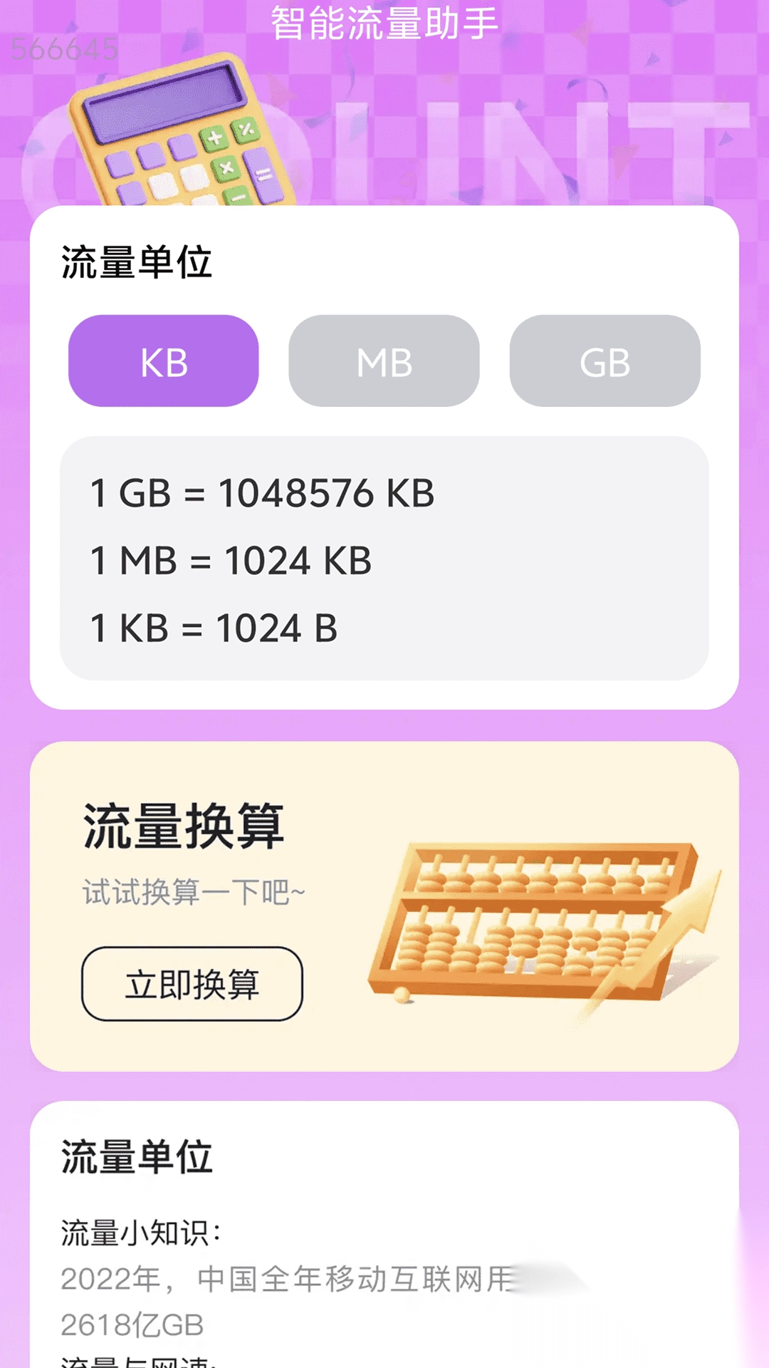 2. 具备流量单位换算功能,满足个性化换算需求,同时涵盖流量知识科普内容,助力用户学习相关知识。