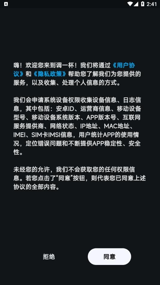1、安装软件后打开,点击同意用户协议和隐私政策。