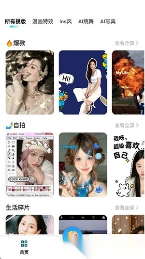 3. 有海量模板可供参考,类型丰富多样,涵盖自拍、生活碎片、夏日、复古以及拼图等。