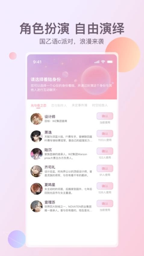 1、启动后,在“身份选择”界面挑选感兴趣的虚拟角色(如动漫主角/游戏英雄),查看背景故事和技能设定。