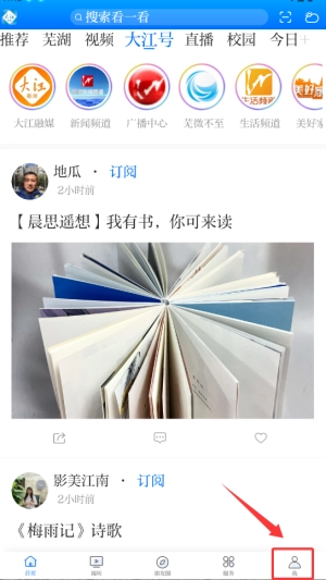 1、启动大江看看后,点击界面右下角的"我的"图标进入个人中心页面。