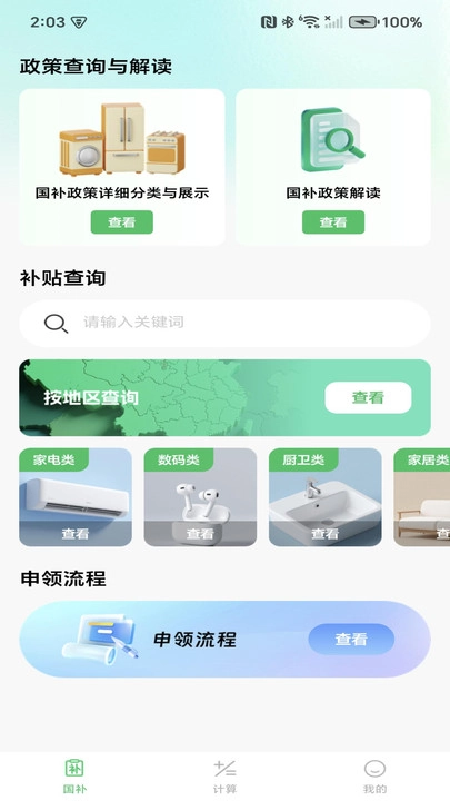 国补免费速查宝,这是一款专为国补查询打造的手机软件。它具备政策分类展示功能,能让你清晰了解不同政策类别;还有专业解读,助你深入理解政策内涵。补贴多维度查询,满足你多样化的查询需求;申领流程指引,一步步引导你办理申领业务;线下门店整合,方便你找到线下办理点。从信息获取直至业务办理,它提供全链条服务,覆盖国补应用的各个环节。如此一来,有效降低了国补政策的使用门槛,帮助用户轻松享受政策带来的红利。