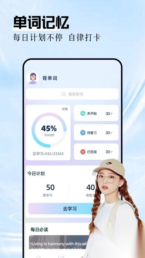 3. 单词学习板块:为用户呈现单词释义及例句等内容,助力用户学习英语,有效提升学习效率。