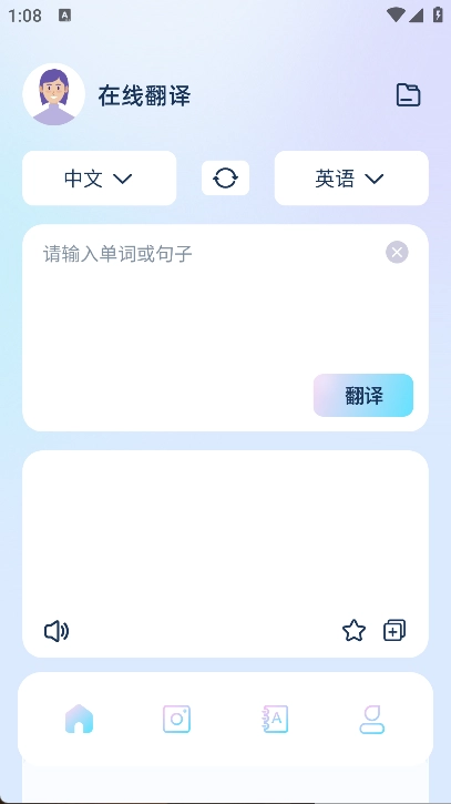 2. 在主页面就能直接启用翻译功能,同时,主页面下方还设有其他实用功能,大家可根据自身需求选择使用。